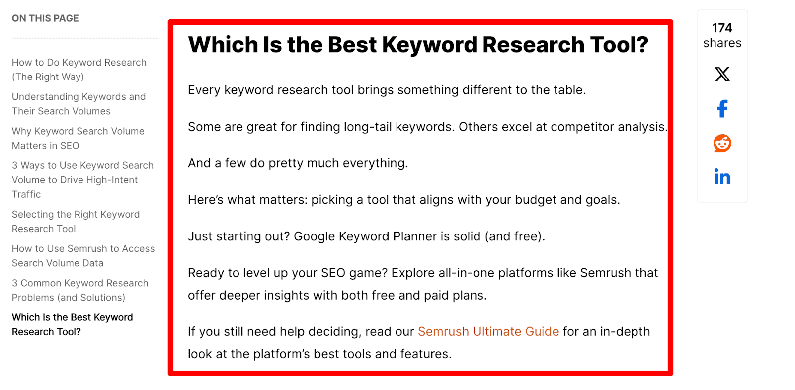 Jetez un œil aux articles de Backlinko sur le style de conclusion « Outils gratuits de recherche de mots-clés ».