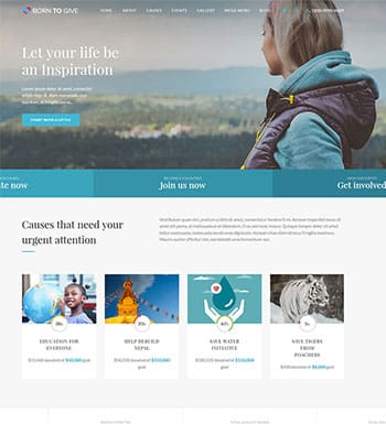 Born To Give est un thème WordPress unique et moderne, conçu pour vous aider à créer un site web pour une association à but non lucratif ou caritative, qui attirera l’attention de vos visiteurs et qui fera la promotion de vos événements, vos causes et vos campagnes de sensibilisation tout en vous aidant à lever des fonds pour ces dernières. Il est livré avec une mise en page très fluide, solide, et est soigneusement conçu en utilisant le HTML5 et le CSS3.