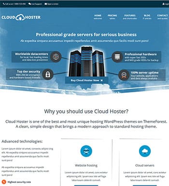 Cloud Hoster est un thème WordPress spécialement conçu pour les sites d’hébergement Web. Il s’adapte donc aux entreprises spécialisées à la fois dans des services d’hébergement ou cloud. Compte tenu des fonctionnalités de ce thème, l’on peut conclure qu’il peut également être utilisé pour créer des blogs, ou tout simplement pour créer des sites vitrines.