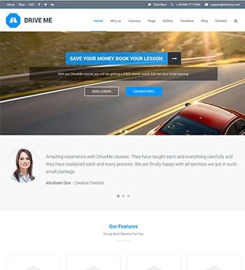 Driveme est un thème WordPress impressionnant ingénieux et extrêmement fiable, merveilleusement évolutif et étonnamment lisible, à fort impact convivial et très mémorable, lumineux et coloré, puissant et accrocheur, audacieux et franc, incroyablement riche en fonctionnalités qui vous aidera à créer spécialement un site web pour une auto-école.