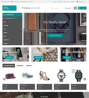 FlatMarket est un thème WordPress propre, branché et plat, spécialement conçu pour vous aider à créer une boutique en ligne professionnelle et moderne. Il est tout à fait responsive et très facile à prendre en main, car il est conçu sur le Framework Bootstrap 3. Il est livré avec les meilleures fonctionnalités de commerce électronique et de plugins disponibles sur le marché. C’est un thème très polyvalent qui offre un nombre illimité de mises en page, ce qui accélèrera votre processus de conception de site web de e-Commerce.