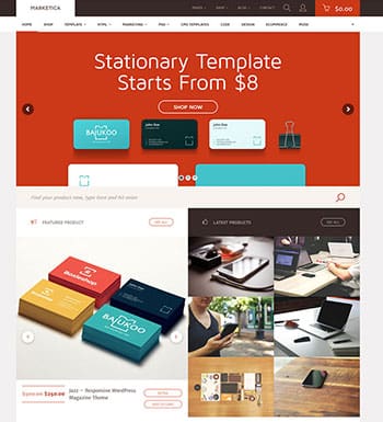 Marketica est un thème WordPress qui vous aidera à créer une incroyable Marketplace sur internet et très facilement. Il s’intègre parfaitement avec toutes les plateformes de e-Commerce populaires comme WooCommerce pour vous aider à vendre vos produits de manière professionnelle.