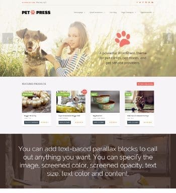 PetPress est un thème WordPress compatible avec WooCommerce qui vous permettra de créer un site web pour vendre des accessoires d’animaux de compagnie. Il vous permet en plus de créer de belle mise en page avec un excellent page builder.