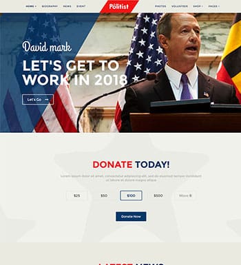 Politist est un thème WordPress unique et moderne, conçu pour vous aider à créer un site web pour un parti politique ou pour un candidat à une élection politique, et qui saura attirer l’attention de vos visiteurs tout en faisant la promotion de vos événements, vos causes et vos campagnes de sensibilisation et bien d’autres. Il est livré avec une mise en page très fluide, solide, et est soigneusement conçu en utilisant le HTML5 et le CSS3, pour vous aider à suivre le rythme des dernières tendances dans la conception de sites web.