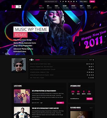 Disponible en deux versions (fenêtre et plein écran), le thème WordPress Remix a été spécialement conçu pour vous aider à créer un site web moderne et professionnel pour artiste, musicien dj, etc…