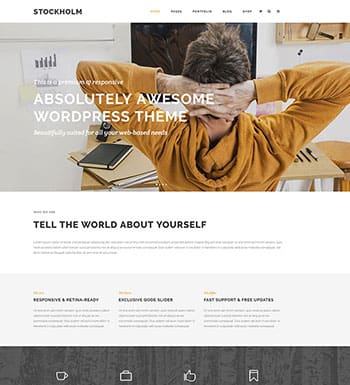 Stockholm est un thème WordPress conçu pour vous aider créer un site web d’entreprise (vitrine), de start-up, d’entrepreneur, ou d’agence. Ce template WordPress est orienté vers les professionnels qui se soucient de la qualité et du détail.