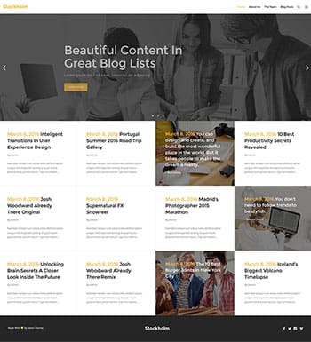 Stockholm est un thème WordPress conçu pour vous aider créer le site web d’une entreprise de construction, de génie civil, ou encore toute entreprise liée au monde de la rénovation des bâtiments. Ce template WordPress est orienté vers les professionnels qui se soucient de la qualité et du détail.