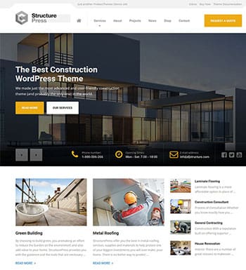 StructurePress est un template doté d’une suite unique et tout à fait impressionnante d’outils, de plugins et des modèles de page visant à simplifier énormément la création et la personnalisation d’un site web de construction, tout en offrant une large gamme de fonctionnalités solides et sophistiquées dès sa mise en fonction, ce qui permettra d’impressionner vos clients et visiteurs.