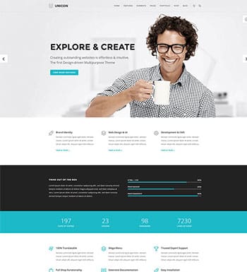 Unicon est un thème WordPress puissamment responsive et moderne, graphiquement professionnel, avec une navigation excellente et intuitive qui vous permettra de créer un site web de start-up. Mais grâce à une mise en page flexible et de ses options de configuration, vous pourez le personnaliser afin qu’il soit utilisé pour créer un site vitrine d’entreprise ou d’agence.