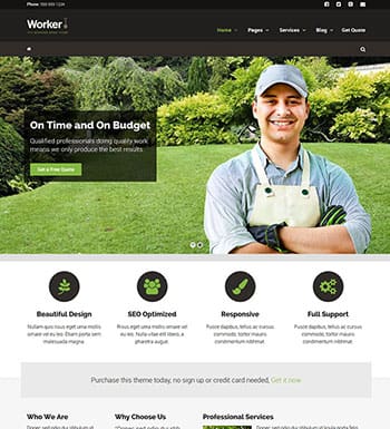 Worker est un thème WordPress moderne et professionnel, spécialement conçu pour les sites web d’entreprise de rénovation donc les activités sont : la peinture, la plomberie, l’électricité et bien d’autres. C’est un thème au look minimal, flexible et modulaire faisant de lui un thème très convivial et entièrement personnalisable.