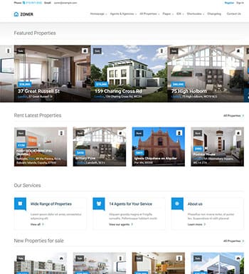 Zoner est un template WordPress intelligent et très flexible conçu sur mesure pour mettre en valeur le site web d’une entreprise des biens immobiliers et d’annonces d’une manière assez élégante. Ce thème est compatible avec WordPress 4.0+ et est entièrement responsive, car sa mise en page se redimensionne intuitivement sur tous les périphériques, quelque soit leurs tailles.