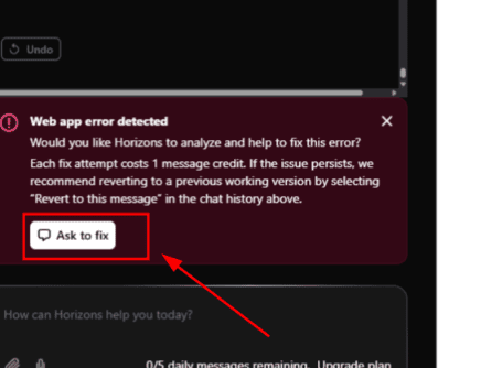 Malgré tout ce qui est génial, Horizons AI App Builder a fait quelques erreurs. Je dois tout revoir dans une fenêtre de prévisualisation.