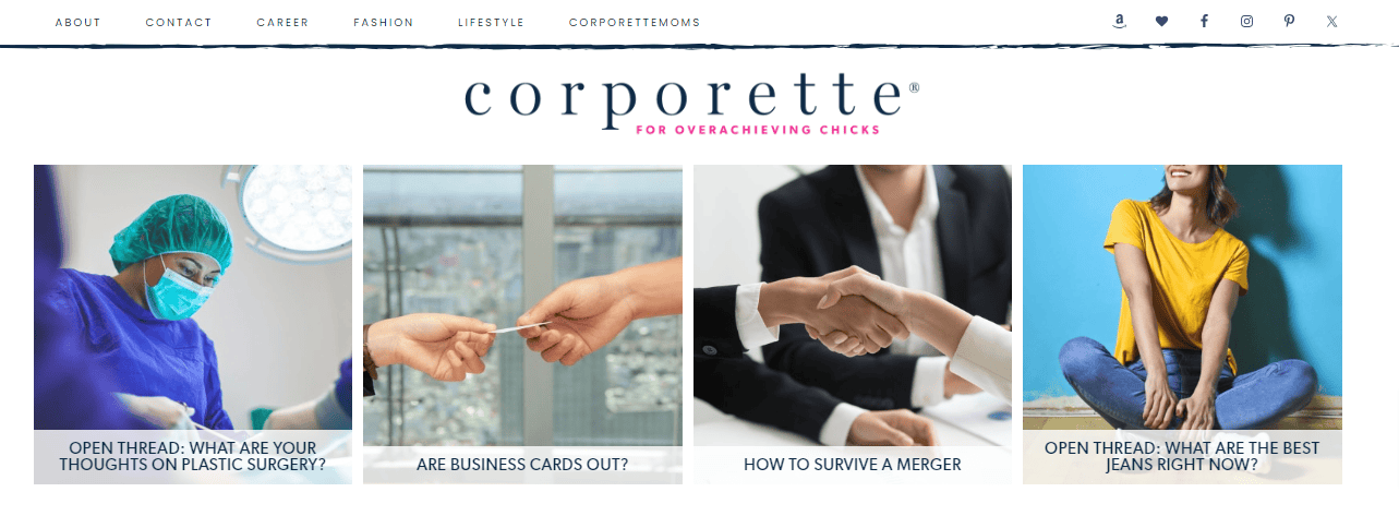 | 9 | Corporette | Kat Griffin | 2008 | Mode pour les femmes actives, conseils de carrière |