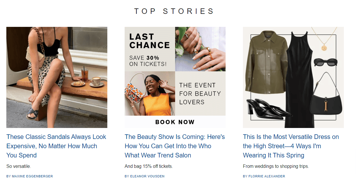 La plupart des blogueurs de l’industrie de la mode gagnent de l’argent grâce à la publicité de deux manières : les bannières publicitaires (en affichant des bannières sur leur site, que ce soit dans les pages, la barre latérale ou le pied de page) et la publicité display (comme l’utilisation de publicités AdSense, Infolinks, Media.net, etc.).