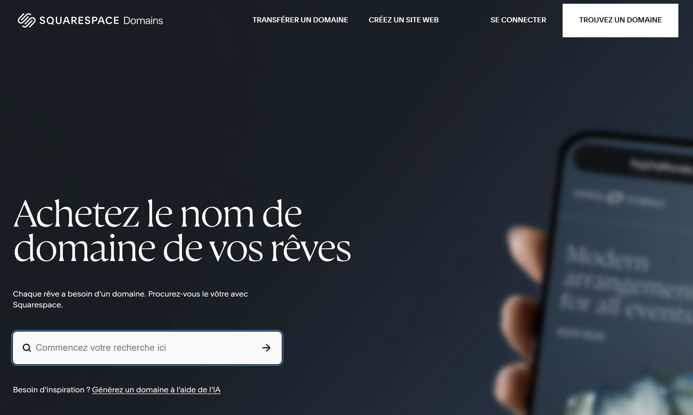 Squarespace ne cherche pas à gagner sur la tarification des domaines, et cela se voit. Ils figurent régulièrement parmi les registraires de domaines les plus chers sur presque tous les TLD. Leur valeur réside dans le fait d’offrir un constructeur de sites web tout-en-un, pas de vendre des domaines bon marché.