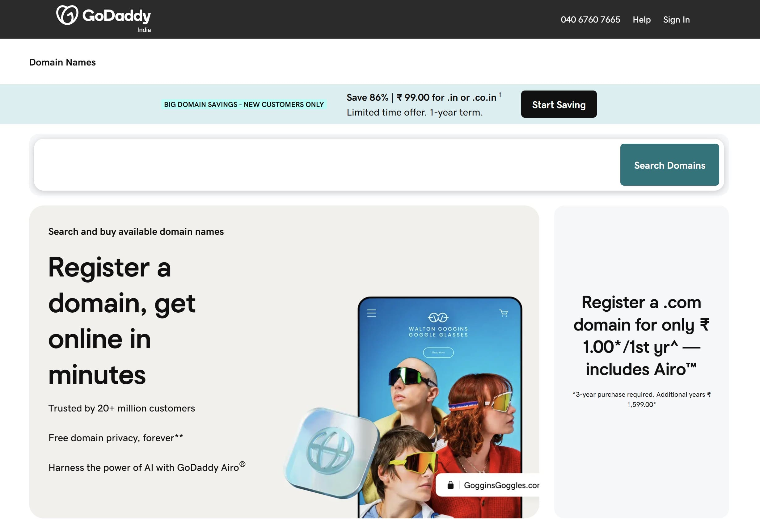 .aiGoDaddy24,99 $Confidentialité des domaines libres