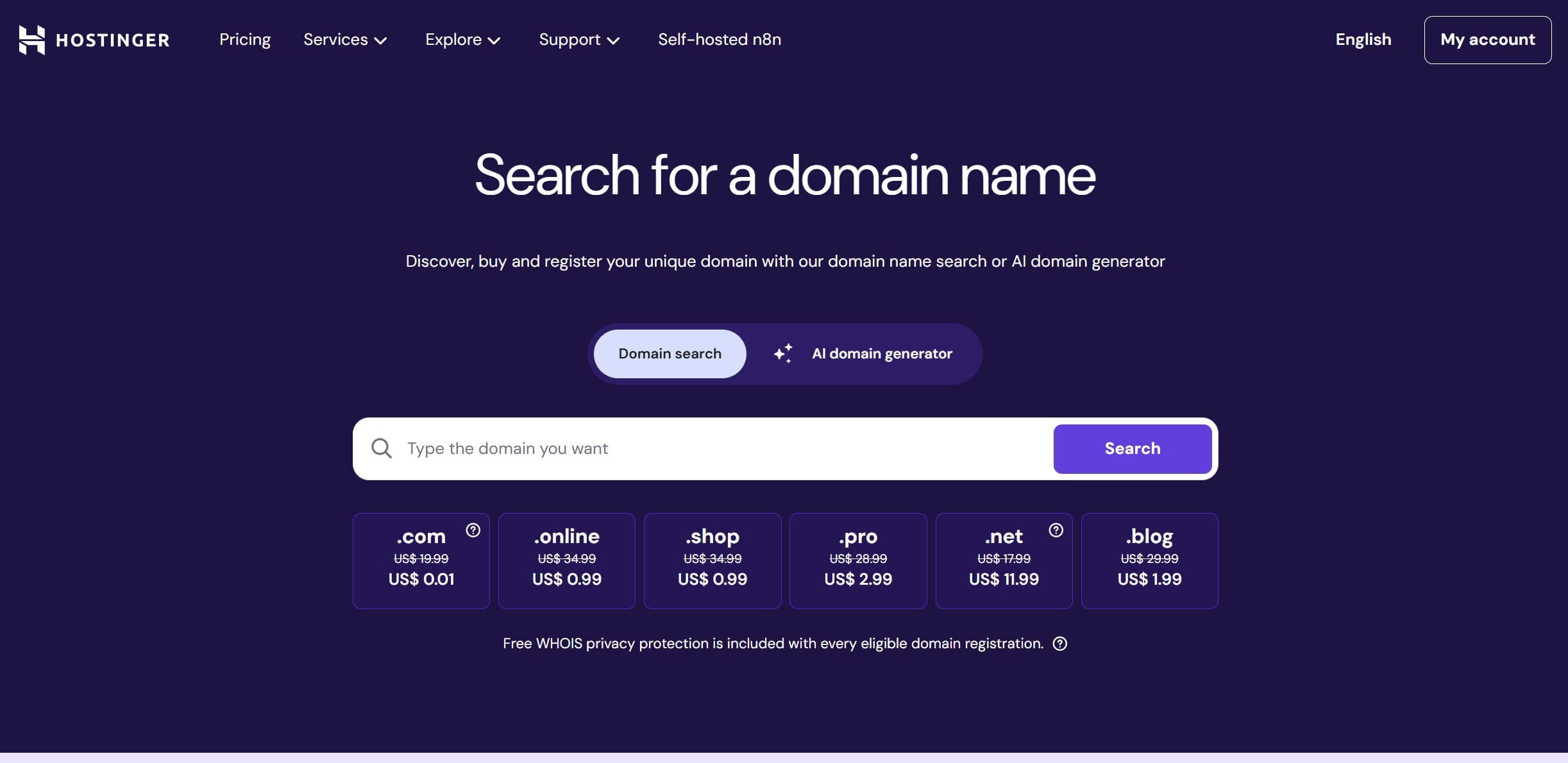 .infoHostinger3,19 $Confidentialité des domaines libres