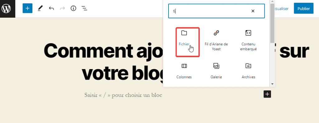 D’abord, vous devez modifier l’article ou la page où vous souhaitez placer votre fichier PDF. Ensuite, insérez un widget Fichier