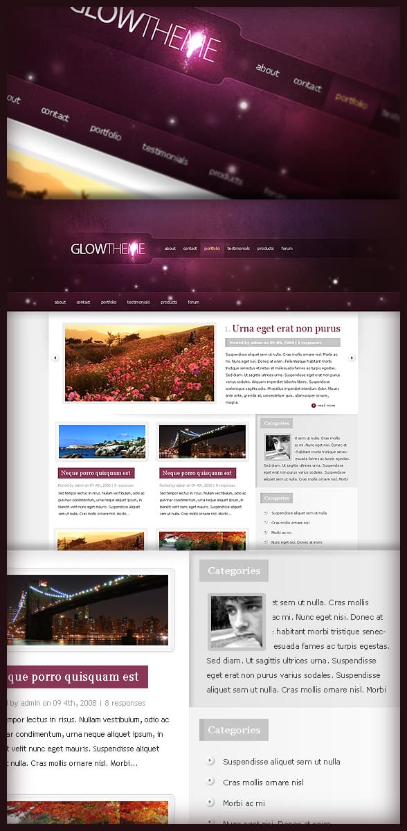 Pour ceux d’entre vous qui fêtent Noël, j’espère que vous avez passé d’agréables vacances. J’ai profité de quelques jours de bonne bouffe et de temps en famille, mais j’ai également effectué des travaux préliminaires sur un nouveau design. Je sais que ce ne sera pas la tasse de thé de tout le monde, et peut-être que certains d’entre vous sont essayés mauve, mais je suppose que j’ai encore besoin de le sortir de mon système! C’est un design assez «flashy», bien plus que d’habitude – ce doit être la pléthore de lumières de Noël que je vois tous les soirs, ou peut-être que l’esprit de Noël m’a juste pétillant genre d’humeur. Le design s’appelle «Glow», et ce n’est qu’au tout début du développement. Cela signifie que cela pourrait changer un peu avant sa sortie, je ne suis pas sûr, mais je sais que certains d’entre vous aiment avoir une idée de ce qui se passe dans les coulisses, alors allez-y: