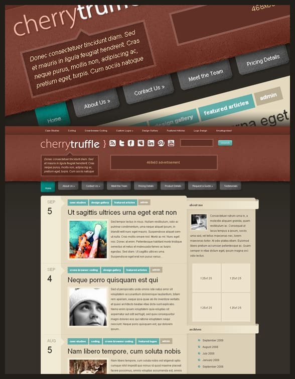 CherryTruffle propose également deux zones prêtes pour les widgets, y compris la barre latérale et le pied de page. Vous trouverez également des bannières publicitaires 125 × 125 et 468 × 60 faciles à gérer, des menus déroulants à plusieurs niveaux pour les pages et les catégories, des images miniatures redimensionnées automatiquement, des liens de réseautage social intégrés dans l’en-tête, un « À propos de Moi »et plus encore!